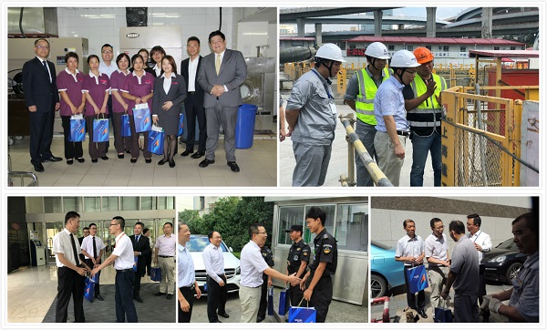近日上(shàng)海烈日炎炎,國際資管總經理(lǐ)劉廣安、工會(huì)主席趙誠、黨委委員丁佳佑等領導前往下屬多(duō)個(gè)控股項目公司,對奮戰在高(gāo)溫一線崗位作(zuò)業的員工進行(xíng)了慰問,并送上(shàng)了防暑降溫用品。