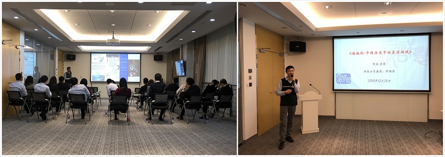 12月26日,國際資管舉辦“悅讀荟”四季讀書(shū)會(huì)·2018年第四季“冬”講讀沙龍活動。來(lái)自國際資管黨委辦公室的邵維佳與大(dà)家(jiā)分享了《潛規則:中國曆史中的真實遊戲》一書(shū),本期嘉賓就書(shū)中主要內(nèi)容,結合諸多(duō)熱點時(shí)事對“潛規則”這一社會(huì)現象進行(xíng)了剖析,引發了大(dà)家(jiā)的討(tǎo)論與思考。倡導大(dà)家(jiā)要明(míng)辨是非,多(duō)用“明(míng)規則”解決問題,少(shǎo)受“潛規則”傷害,持之以恒執行(xíng)中央八項規定精神,不斷鞏固擴大(dà)反腐敗鬥争成果,從嚴治黨永遠在路上(shàng)。本次分享也為(wèi)2018年的“悅讀荟”活動劃上(shàng)了圓滿的句号。