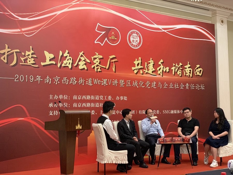 6月27日上(shàng)午,2019年南京西路街(jiē)道(dào)We課V講暨區(qū)域化黨建與企業社會(huì)責任論壇在上(shàng)海展覽中心舉行(xíng),來(lái)自南西轄區(qū)的青年白領和(hé)區(qū)域化黨建單位代表、專家(jiā)學者紛紛各抒己見,為(wèi)講好南西故事,建言獻策。國際資管公司程想元同志(zhì)作(zuò)為(wèi)南西物業聯盟輪值主席,代表集團大(dà)廈公司作(zuò)嘉賓發言,重點突出了大(dà)廈在打黑(hēi)除惡、垃圾分類這兩個(gè)專項工作(zuò)的成果及豐富經驗,展示了優秀的樓宇文化。