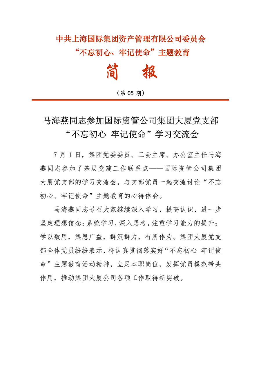 [不忘初心、牢記使命]05 馬海燕同志(zhì)參加國際資管公司集團大(dà)廈黨支部“不忘初心 牢記使命”學習交流會(huì)
