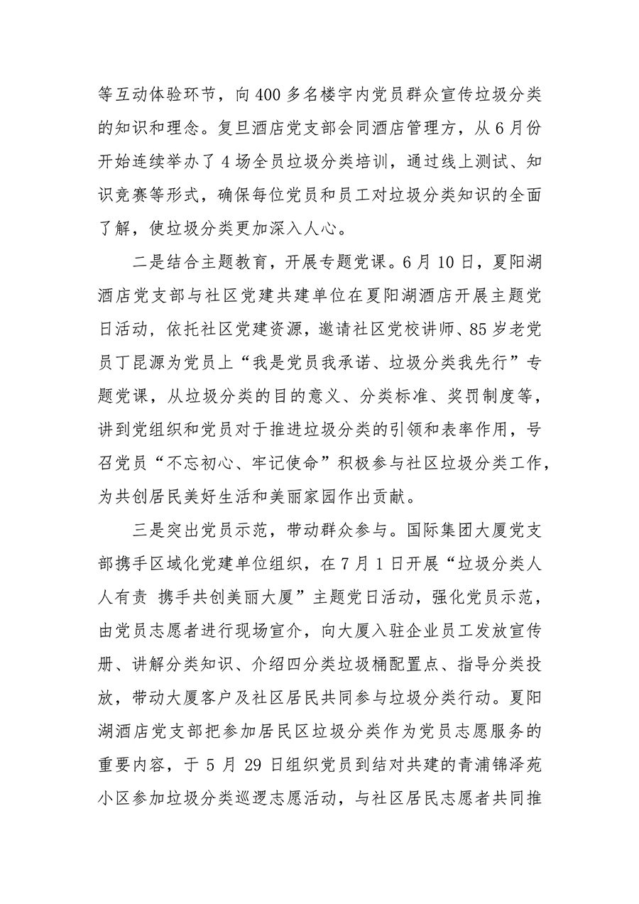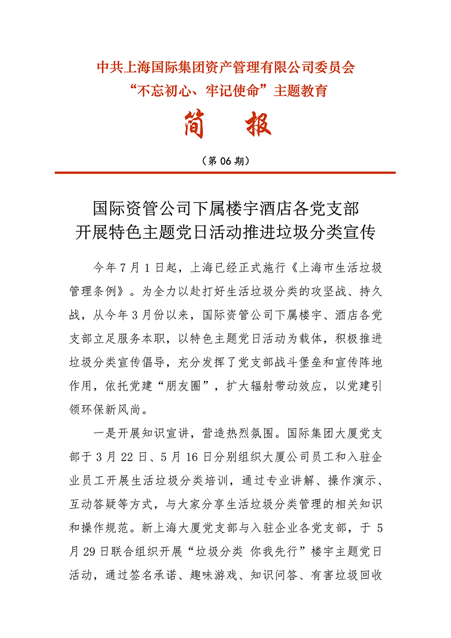 [不忘初心、牢記使命]06 國際資管公司下屬樓宇酒店(diàn)各黨支部開(kāi)展特色主題黨日活動推進垃圾分類宣傳