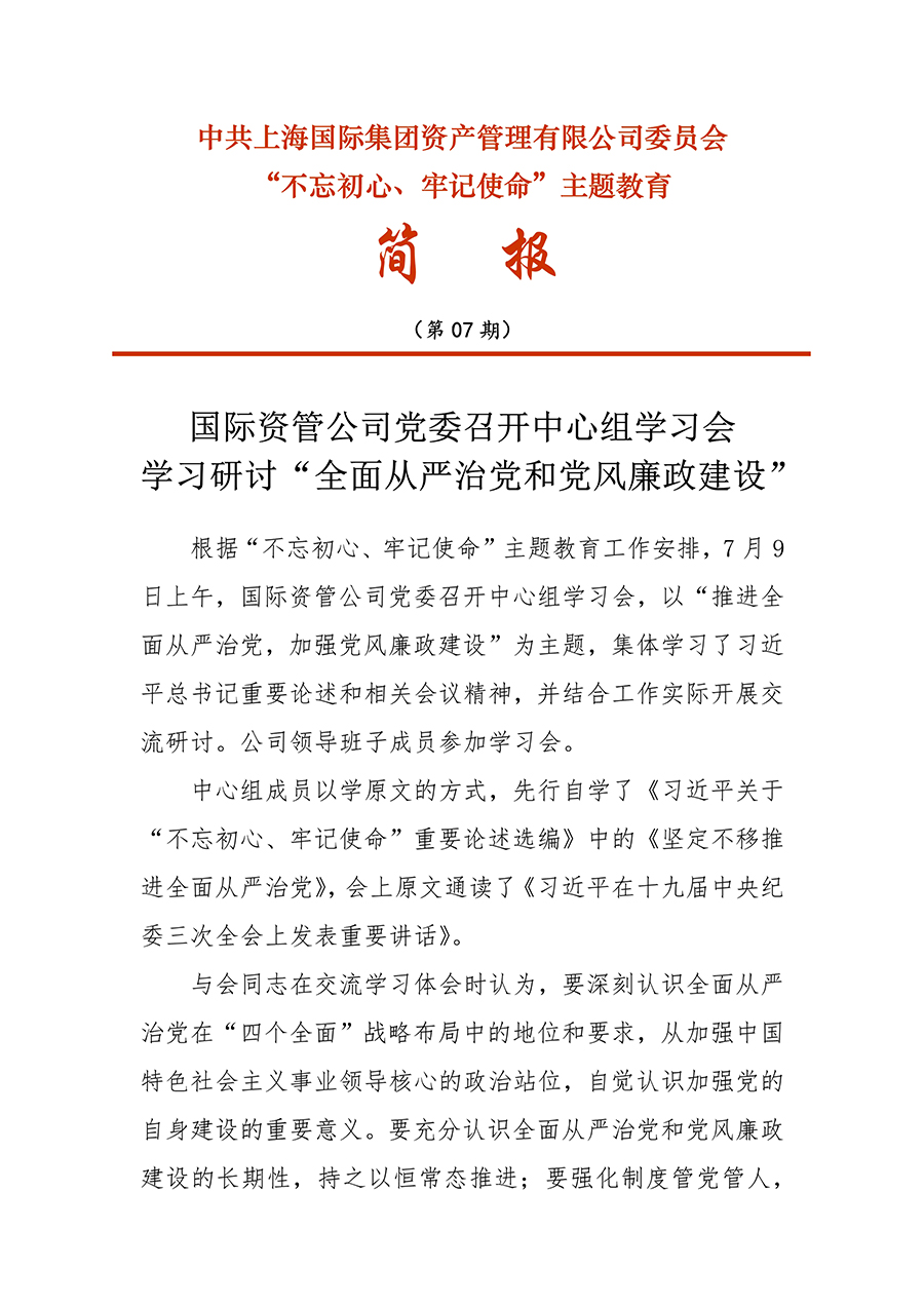 [不忘初心、牢記使命]07 國際資管公司黨委召開(kāi)中心組學習會(huì)學習研討(tǎo)“全面從嚴治黨和(hé)黨風廉政建設”