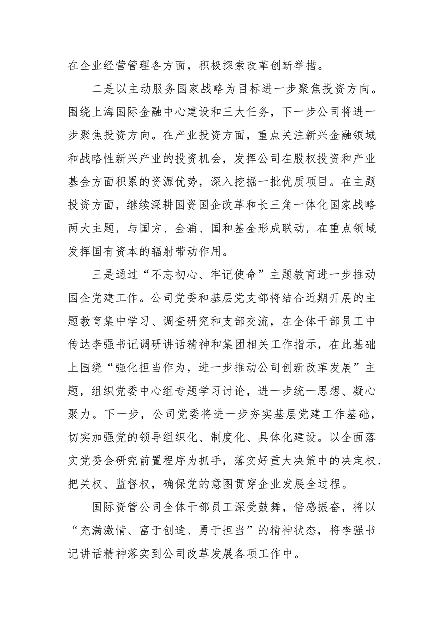 [不忘初心、牢記使命]09 國際資管公司黨委組織傳達學習李強書(shū)記調研集團講話(huà)精神