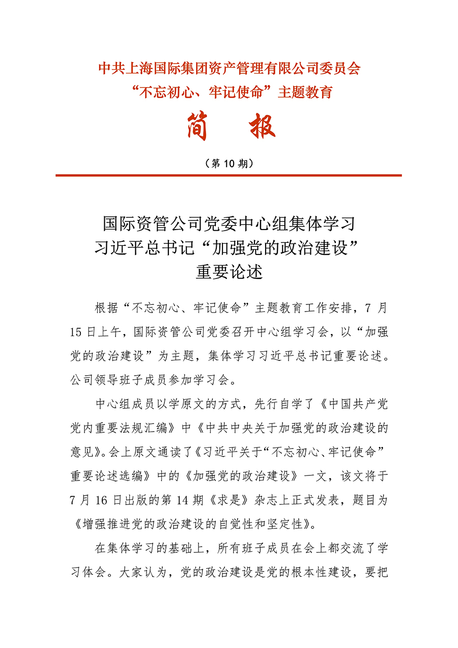 [不忘初心、牢記使命]10 國際資管公司黨委中心組集體(tǐ)學習習近平總書(shū)記“加強黨的政治建設”重要論述
