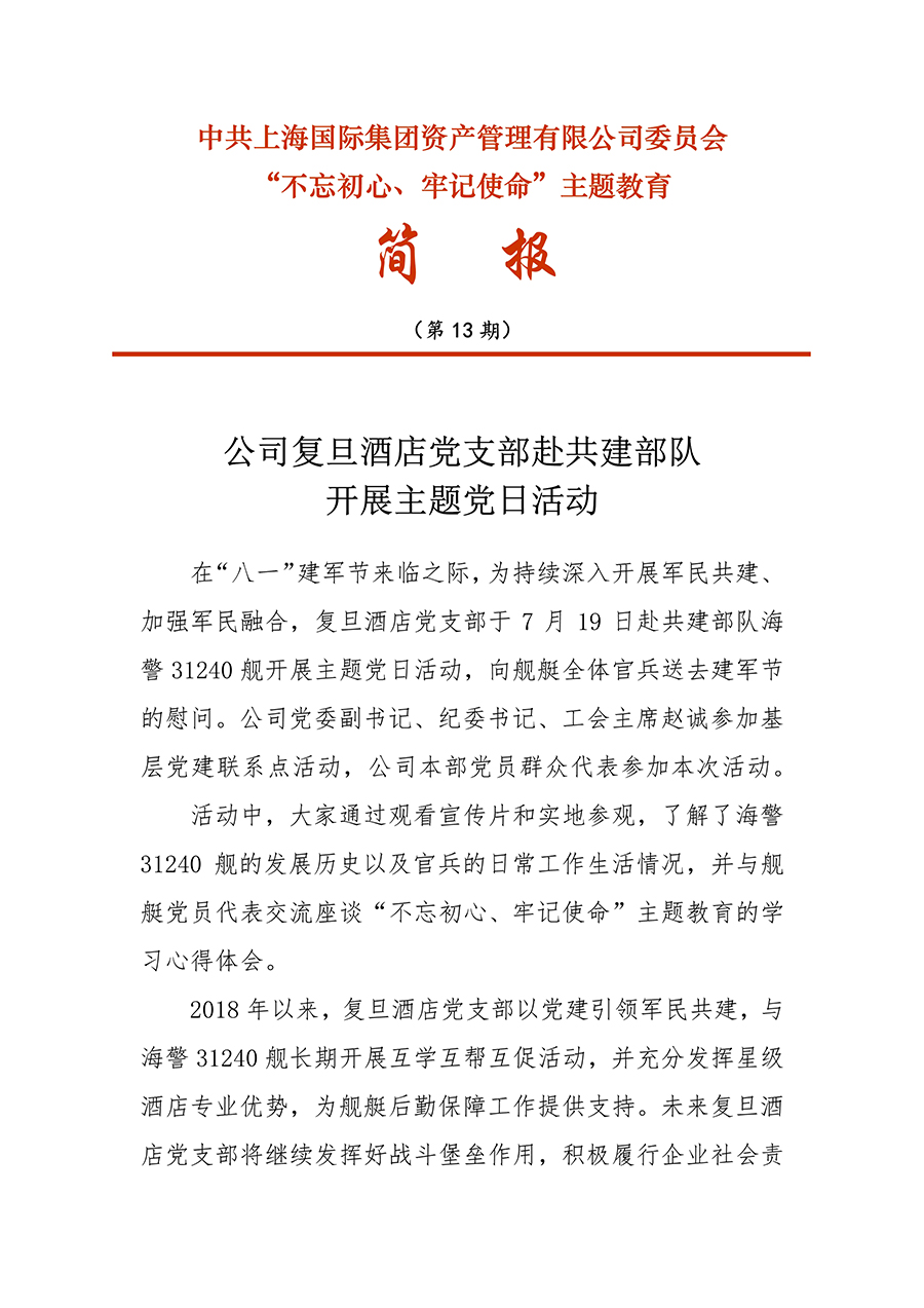 [不忘初心、牢記使命]13 公司複旦酒店(diàn)黨支部赴共建部隊開(kāi)展主題黨日活動