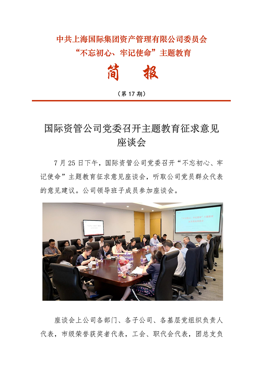 [不忘初心、牢記使命]17 國際資管公司黨委召開(kāi)主題教育征求意見座談會(huì)