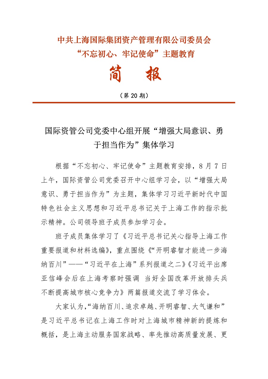 [不忘初心、牢記使命]20 國際資管公司黨委中心組開(kāi)展“增強大(dà)局意識、勇于擔當作(zuò)為(wèi)”集體(tǐ)學習