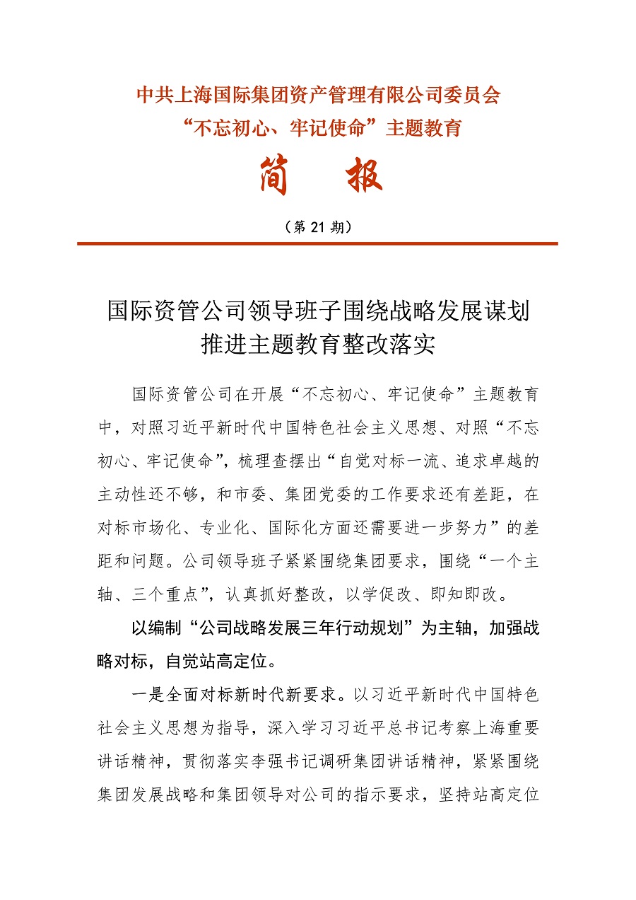 [不忘初心、牢記使命]21 國際資管公司領導班子圍繞戰略發展謀劃推進主題教育整改落實
