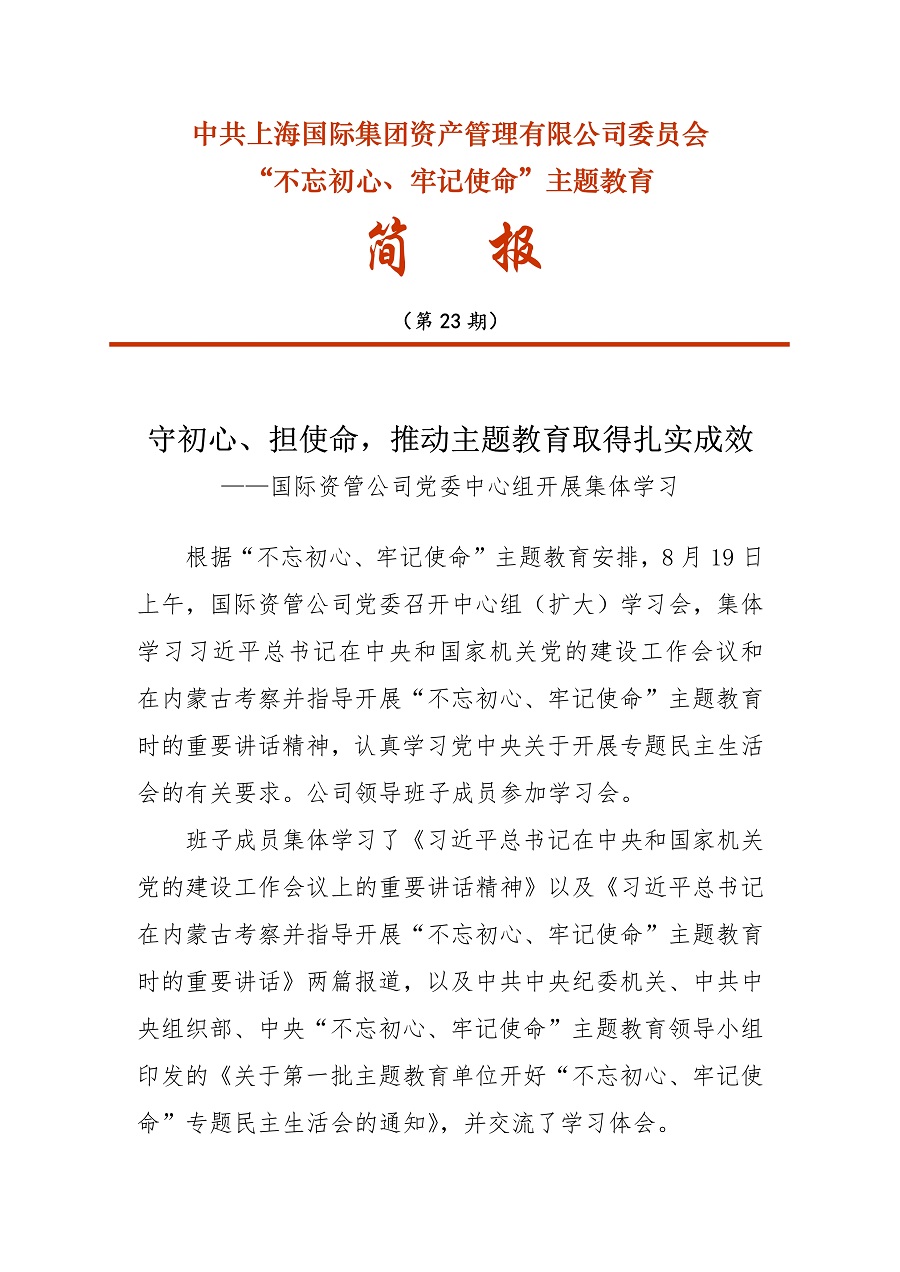 [不忘初心、牢記使命]22 國際資管公司黨委中心組開(kāi)展“學習黨史、新中國史,增強曆史擔當”集體(tǐ)學習
