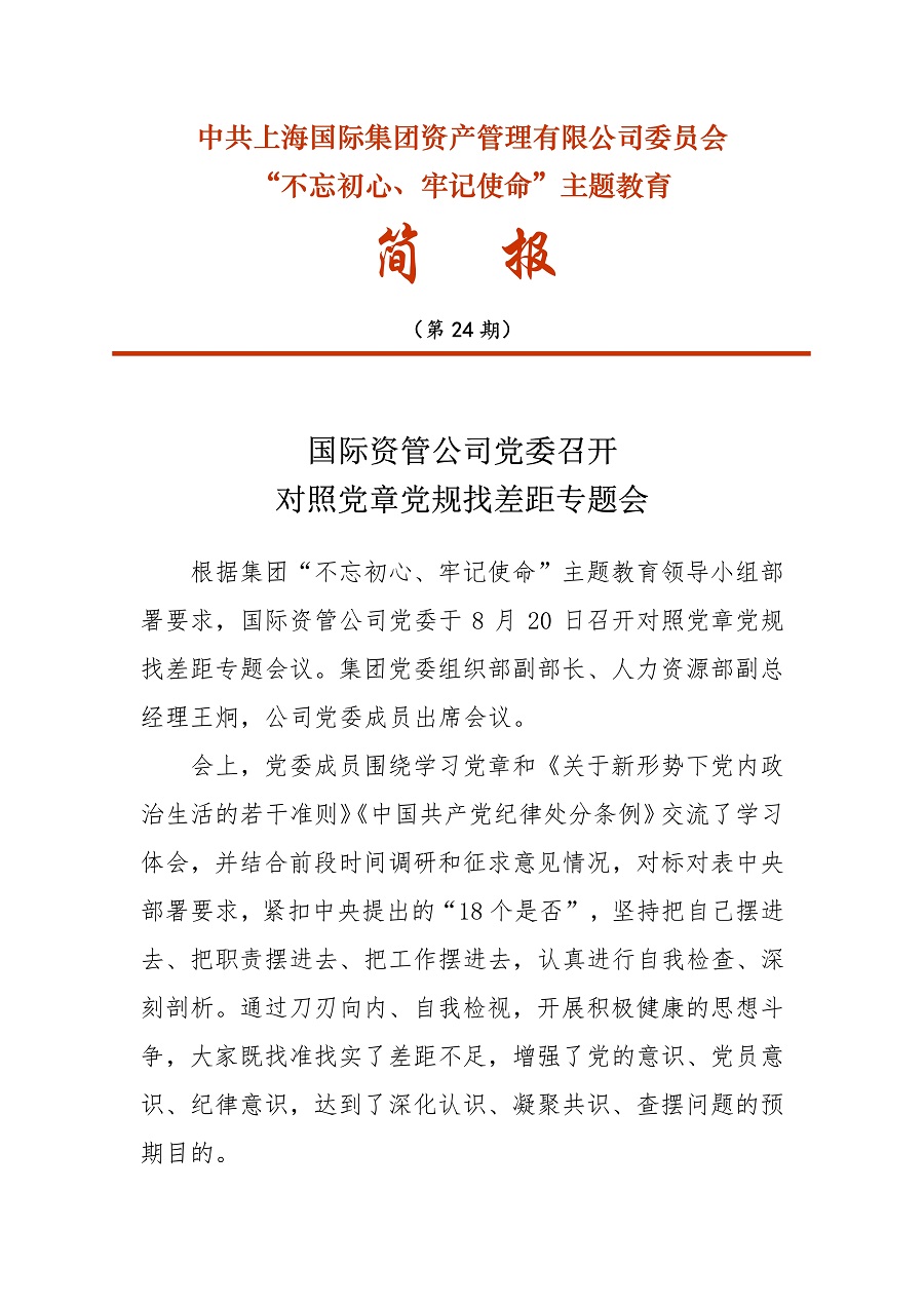 [不忘初心、牢記使命]24 國際資管公司黨委召開(kāi)對照黨章黨規找差距專題會(huì)
