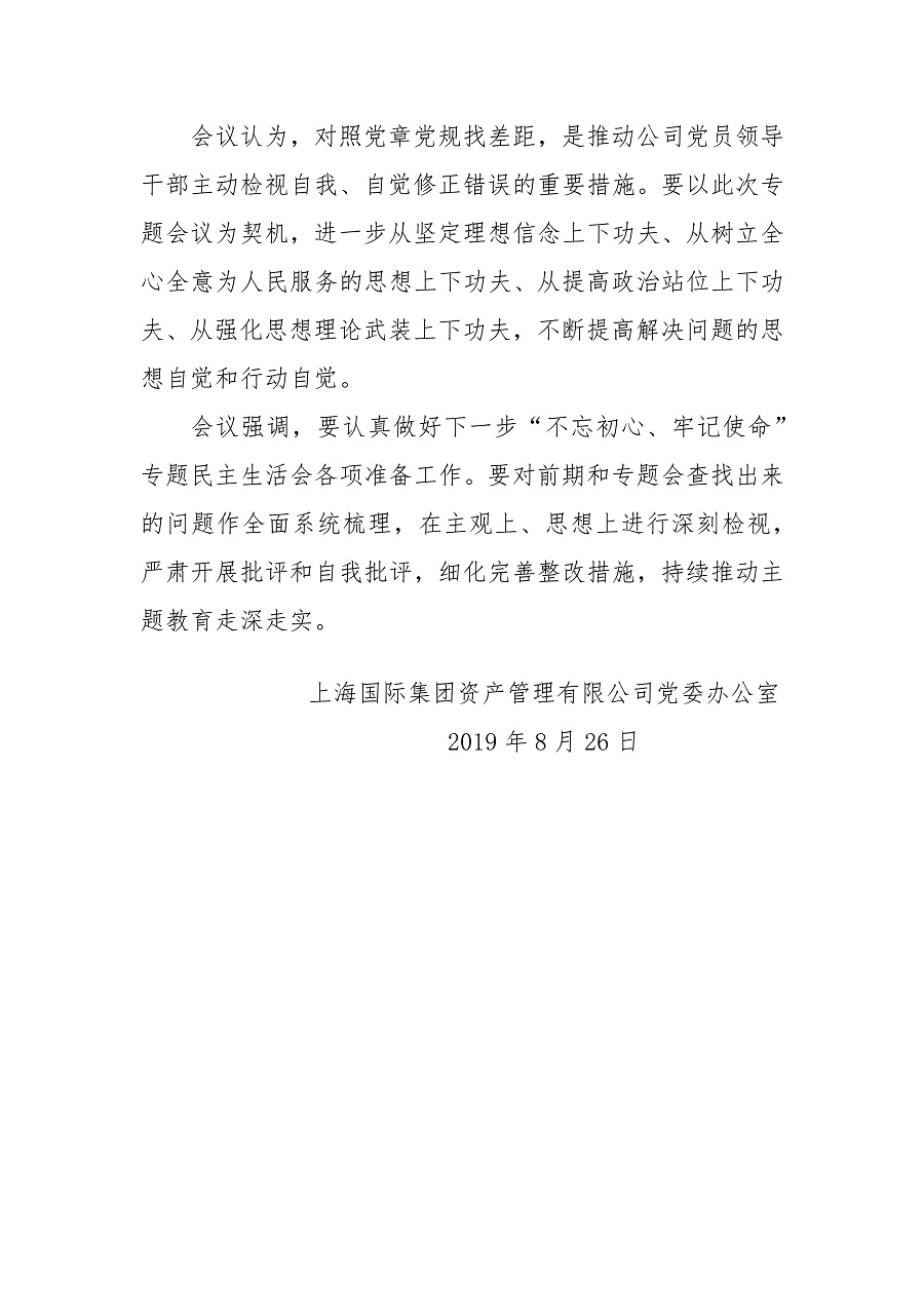 [不忘初心、牢記使命]25 國際資管公司黨委召開(kāi)“不忘初心、牢記使命”專題民主生(shēng)活會(huì)