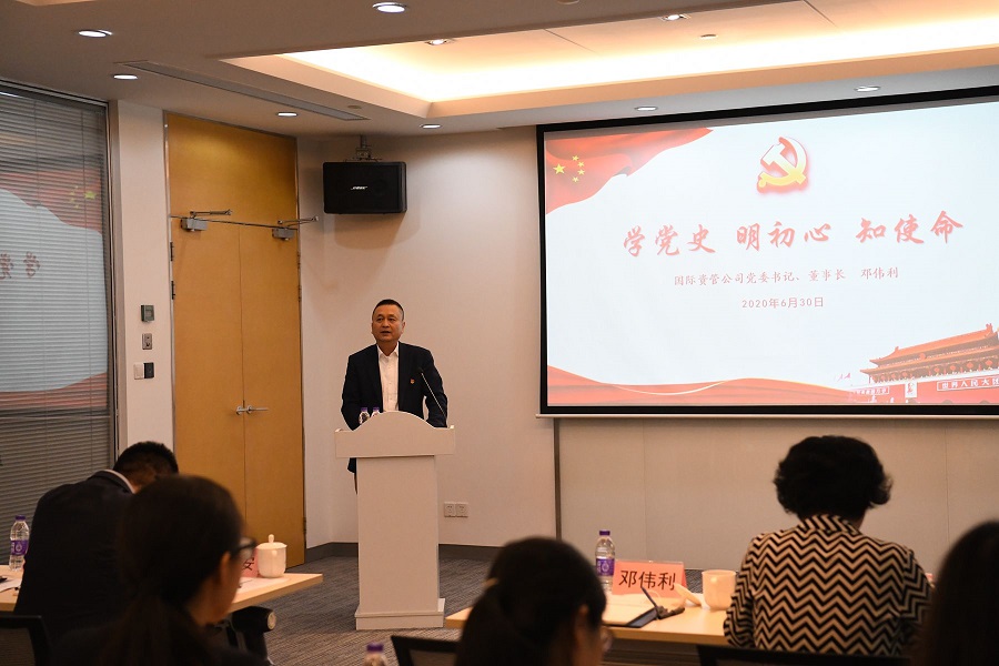 為(wèi)貫徹習近平新時(shí)代中國特色社會(huì)主義思想,深入學習“黨史、新中國史、改革開(kāi)放史、社會(huì)主義發展史”,激勵各級黨組織和(hé)黨員在深化公司改革創新發展中奮發有(yǒu)為(wèi)、建功立業,6月30日下午,國際資管黨委開(kāi)展“奮進新時(shí)代,黨員先鋒行(xíng)”七一主題黨日活動。公司黨政班子成員、集團黨委管理(lǐ)幹部、公司助理(lǐ)以上(shàng)中層管理(lǐ)人(rén)員、本部各支部全體(tǐ)黨員參加活動。