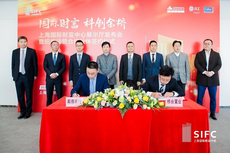 上(shàng)海橋合置業有(yǒu)限公司分别與戴德梁行(xíng)、仲量聯行(xíng)及高(gāo)力國際簽訂了物業管理(lǐ)及招商代理(lǐ)協議,各方以攜手發展、合作(zuò)共赢為(wèi)目标,共同打造金橋地區(qū)新标杆,定義金橋辦公樓新标準。随後徽仁芃盈資産管理(上海)有限公司董事長、黨委書(shū)記鄧偉利先生(shēng)宣布項目展示廳正式啓用,标志(zhì)着上(shàng)海國際财富中心招商運營工作(zuò)全面啓動。