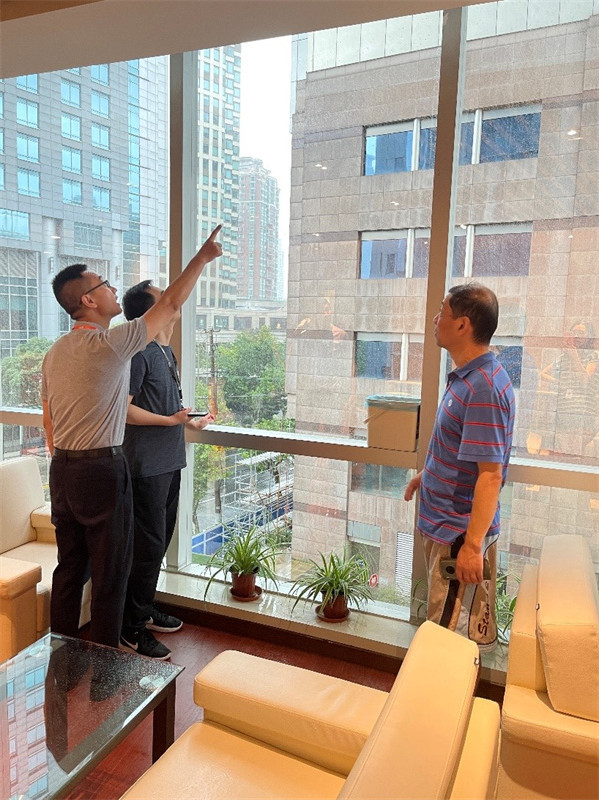 随後,劉廣安來(lái)到集團大(dà)廈,對公司所在的3、4樓辦公室逐一進行(xíng)安全檢查,并對可(kě)能出現的突發狀況進行(xíng)工作(zuò)部署。