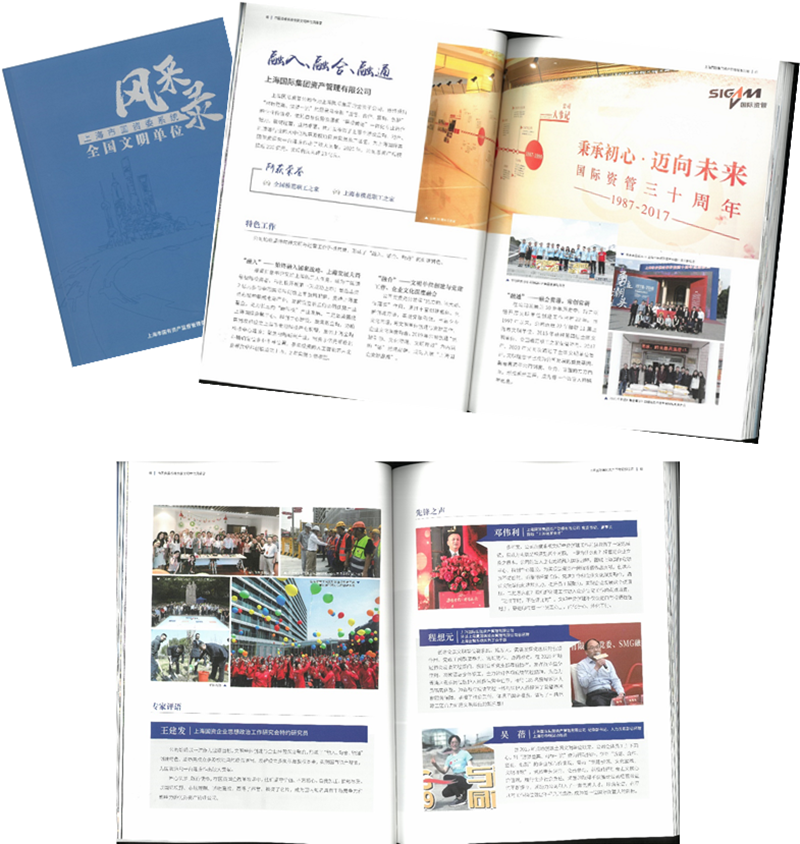 近期,上(shàng)海市國資委系統精神文明(míng)建設工作(zuò)會(huì)議召開(kāi),國際資管公司黨委書(shū)記、董事長鄧偉利出席會(huì)議。會(huì)上(shàng)舉行(xíng)了《上(shàng)海市國資委系統全國文明(míng)單位風采錄》首發儀式,對系統內(nèi)三十三家(jiā)全國文明(míng)單位進行(xíng)了宣傳報道(dào)。作(zuò)為(wèi)市國資委系統全國文明(míng)單位之一,國際資管公司《融入、融合、融通(tōng)》被該書(shū)收錄,充分展示了公司的創建特色。