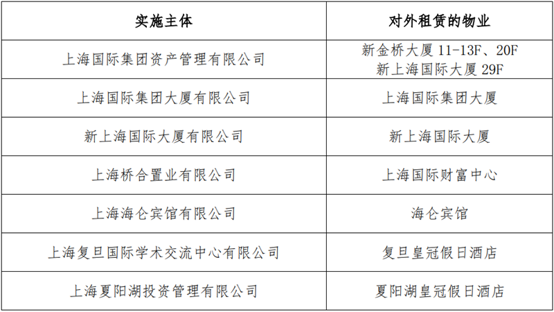 為(wèi)貫徹《上(shàng)海市全力抗疫情助企業促發展的若幹政策措施》精神及上(shàng)海市國有(yǒu)資産監督管理(lǐ)委員會(huì)(以下簡稱“市國資委”)《關于上(shàng)海市國有(yǒu)企業減免小(xiǎo)微企業和(hé)個(gè)體(tǐ)工商戶房(fáng)屋租金實施細則》有(yǒu)關工作(zuò)要求,落實減免小(xiǎo)微企業和(hé)個(gè)體(tǐ)工商戶房(fáng)屋租金政策,切實減輕小(xiǎo)微企業和(hé)個(gè)體(tǐ)工商戶的經營負擔,支持企業纾困發展,現将有(yǒu)關事項公告如下: